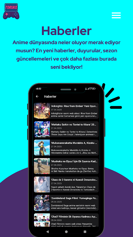 Descubra, assista e acompanhe animes com legendas em turco. Com o Toruko, acesse rapidamente animes novos e populares, retome de onde parou e organize seus favoritos. Além disso, descubra mangás, manhwas, manhuas e webtoons em um único aplicativo; expanda seu entretenimento com jogos temáticos de anime!