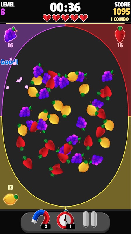 Quando você joga itens continuamente no local correto, quanto maior o número de combos, mais pontos você ganha!