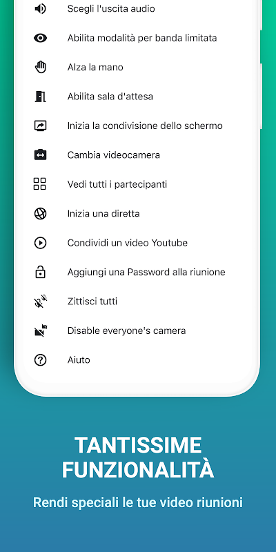 • Accesso facile: basta condividere un link e gli invitati potranno partecipare con un semplice clic da più dispositivi