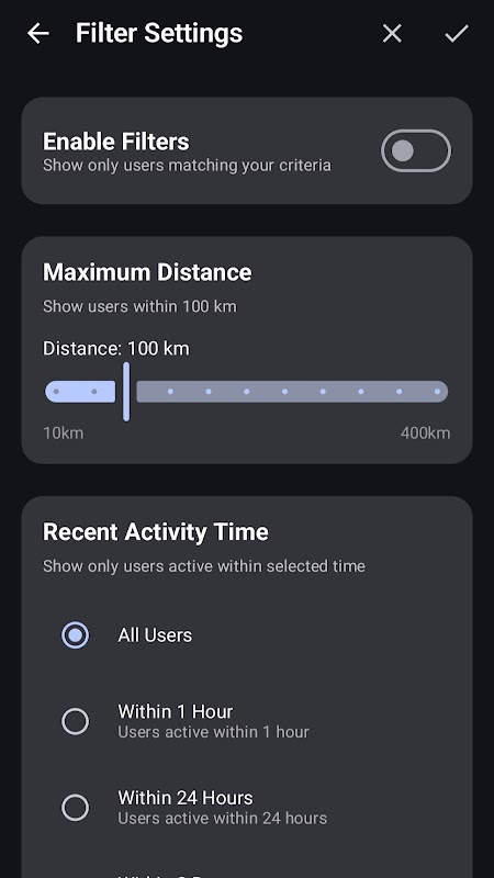 Busca de localização em tempo real: Encontre viajantes próximos a você com filtros de raio ajustáveis