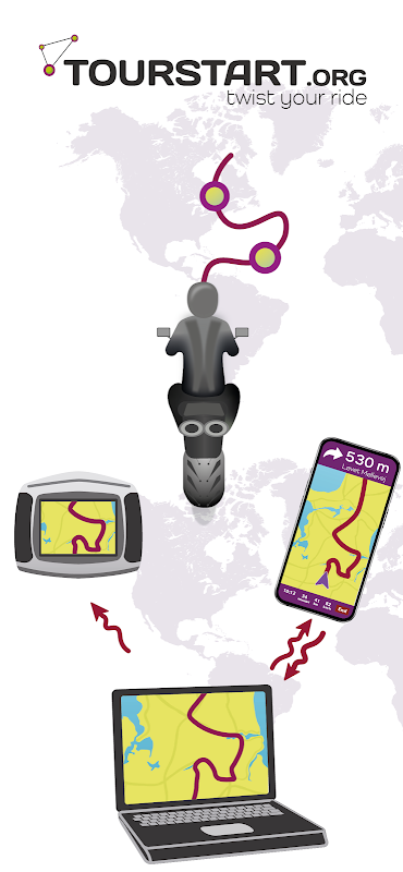 Tourstart é um site e aplicativo que facilita o planejamento, o compartilhamento e os passeios de motocicleta. Tourstart é um site e aplicativo fácil de usar onde você pode planejar e encontrar inspiração para seu próximo passeio de motocicleta ou férias.
