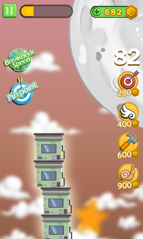 △ The quicker the tower is built, the higher the score is
