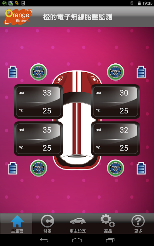- smartphones / tablet quatro monitoramento da pressão dos pneus em tempo real.