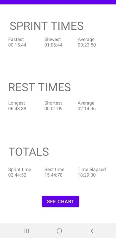 No final de uma sessão, seus tempos de sprint e descanso são plotados em um gráfico.