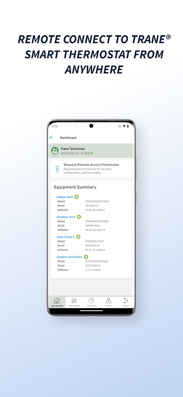 O aplicativo móvel Trane Technician (anteriormente Trane Diagnostics) foi projetado especificamente para auxiliar técnicos de serviço e empresas de HVAC, simplificando os processos de instalação, comissionamento e serviço. Ao integrar-se perfeitamente com Link Systems, Link Zoning e Link Relay Panels, o aplicativo aprimora a experiência geral de instalação. Sua interface amigável fornece orientação passo a passo aos técnicos de HVAC, simplificando o processo de configuração. Além disso, garante acesso seguro aos dados do cliente e permite o monitoramento em tempo real dos alertas do sistema, melhorando a eficiência do diagnóstico de problemas. Com a funcionalidade de configuração remota do revendedor (DRC), as empresas de HVAC podem acessar e monitorar remotamente o Link dos proprietários ou termostatos inteligentes, permitindo manutenção proativa, configuração e suporte de diagnóstico para garantir o desempenho ideal do sistema HVAC. O recurso de instalação guiada do aplicativo simplifica a geração de diagramas de fiação precisos e configurações de interruptores DIP. Além disso, oferece acesso à literatura do produto, vídeos de treinamento e calculadoras que auxiliam ainda mais os técnicos em seu trabalho diário.