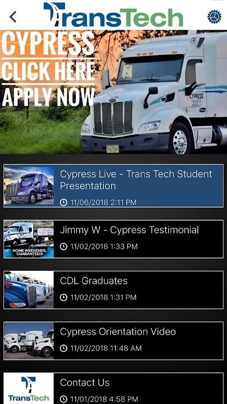 Download the Trans Tech CDL app to access contact information, program details, career opportunities, industry news and daily reminders through push notifications.