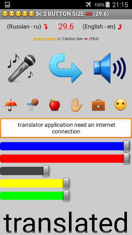 A tradução entre 40 línguas. Reconhecimento rechi.Ozvuchivanie golosom.akselerometr.