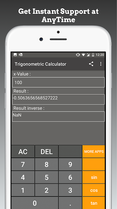 Este aplicativo gratuito é uma calculadora matemática, que calcula os valores para as funções trigonométricas mais importantes, como: Seno, Cosseno, Tangente, Arcsine, Arccosina, Arctangente.