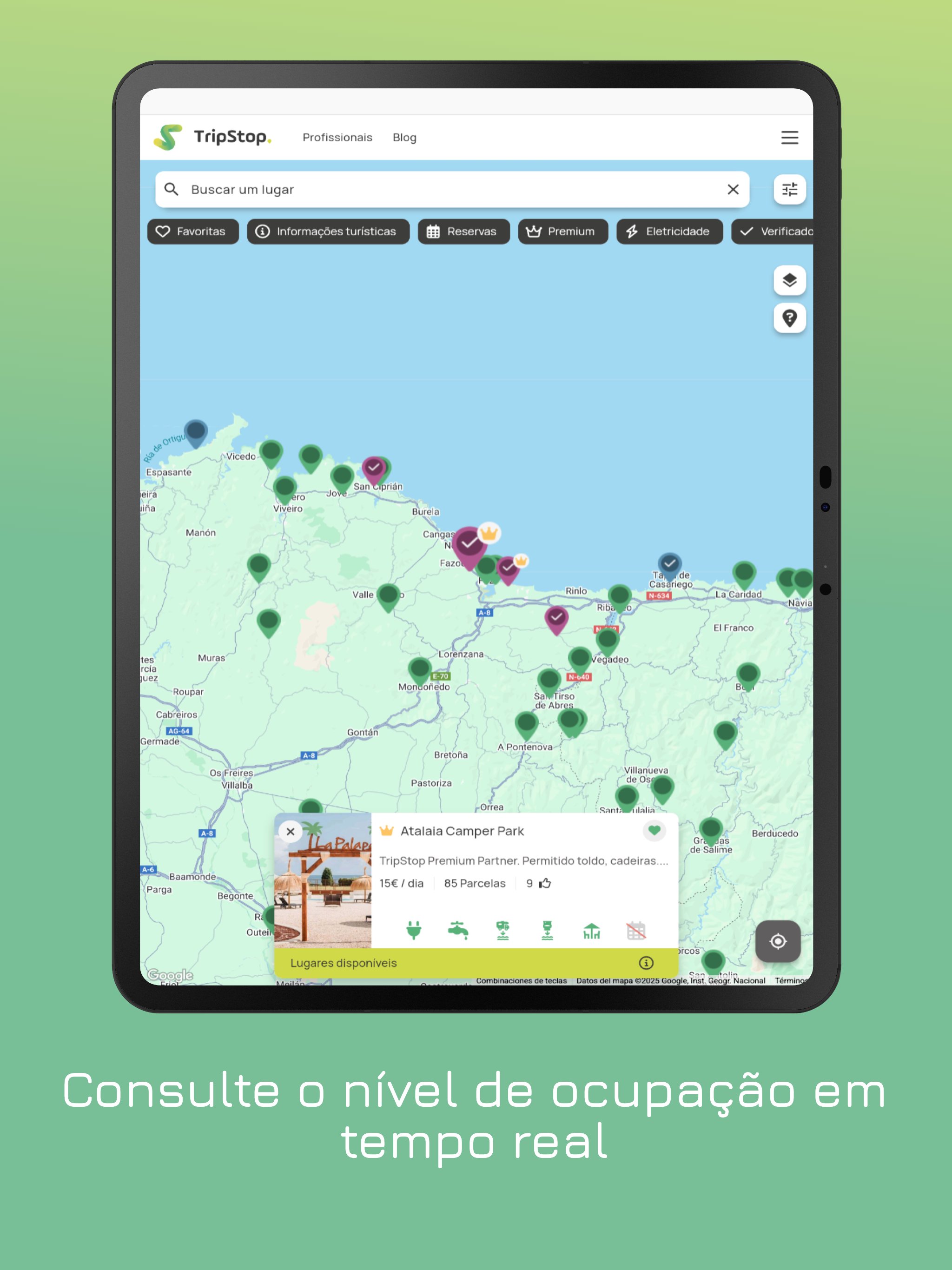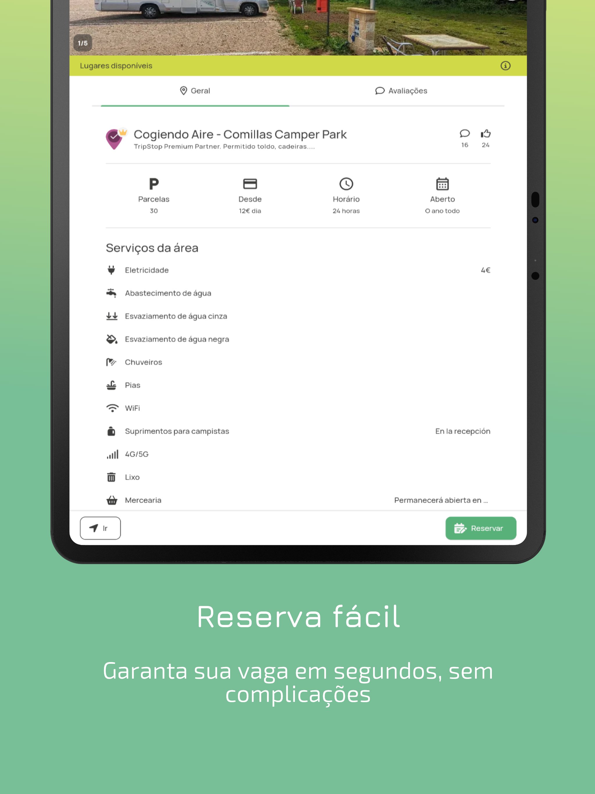 🚐 Consulte a disponibilidade em tempo real e reserve o seu lugar em segundos nas áreas TripStop Partner.