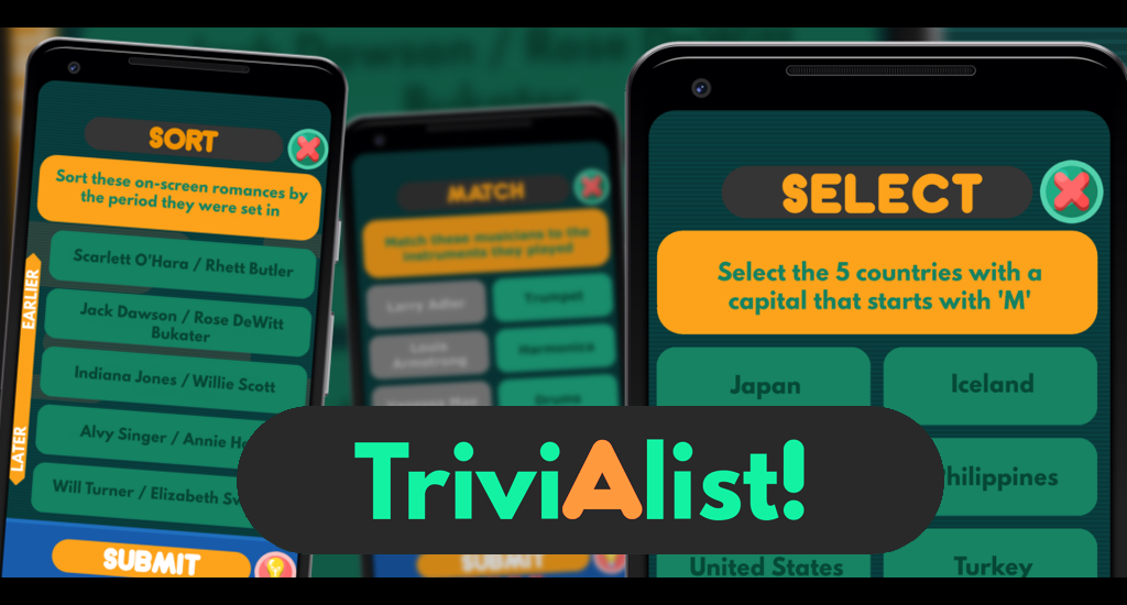 Neste novo tipo de jogo de trívia de conhecimento geral, em vez de escolher uma resposta correta entre quatro opções (chato!), Você gerencia uma lista de itens com base em uma pergunta que fazemos. Tudo o que você precisa fazer é CLASSIFICAR, SELECIONAR ou COMBINAR cada lista:
