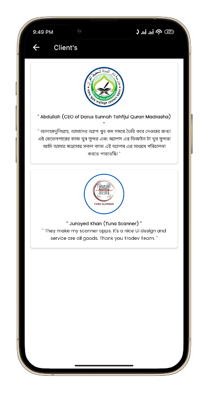 Na Trodev IT, nosso compromisso principal gira em torno de aproveitar o poder da tecnologia para atender às diversas necessidades de nossos clientes. Somos especializados no desenvolvimento de aplicativos de ponta que atendem a diversos setores e domínios. Nossa equipe de desenvolvedores qualificados trabalha em estreita colaboração com os clientes para entender suas necessidades e criar soluções personalizadas que se alinhem com seus objetivos de negócios. Quer se trate de um aplicativo móvel, um aplicativo baseado na web ou software de desktop, a Trodev IT tem a experiência necessária para dar vida a ideias.