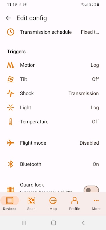 Ao ativar o Guard Lock para o seu dispositivo, você bloqueará a unidade virtualmente em uma determinada posição. Ligue e escolha Posição atual da unidade ou Localização atual do seu telefone. Agora você terminou. Quando esta nova configuração for baixada para o seu dispositivo, você receberá um alarme por e-mail se o seu dispositivo transmitir uma posição distante do local onde agora foi praticamente bloqueado.
