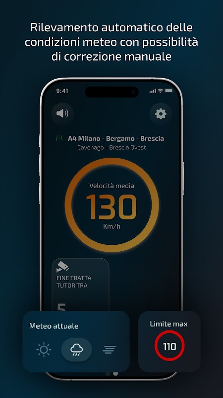 • Escolha do limite de velocidade para as condições meteorológicas (se o limite manual não estiver definido)