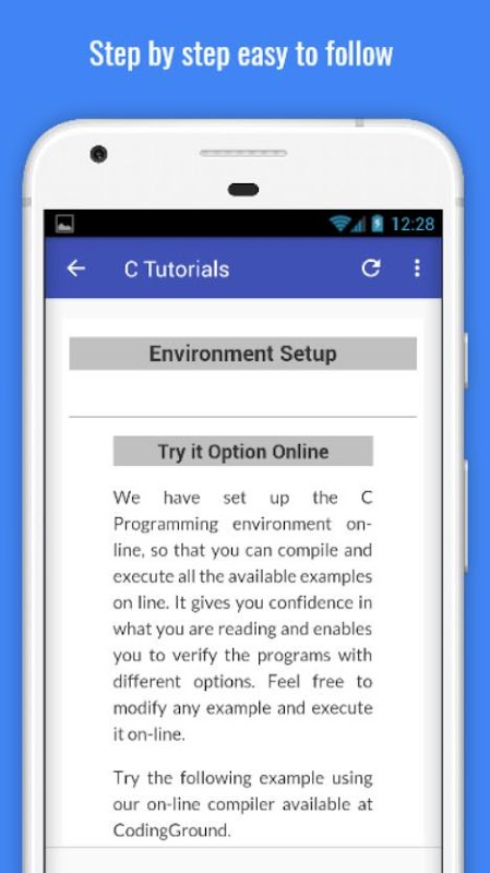 Tutorials for C Offline is a complete application for those of you who want to learn C easily and for free. There are dozens and even hundreds of C tutorials starting to base for beginners to advanced. All these tutorials you can read offline without the need to connect to the internet or mobile data.
