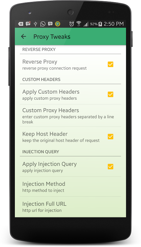 Obter acesso gratuito à Internet usando o construído em ajustes de proxy como proxy reverso, consulta injeção, cabeçalhos personalizados para domínio de bypass / ip baseada restrições / faturamento.
