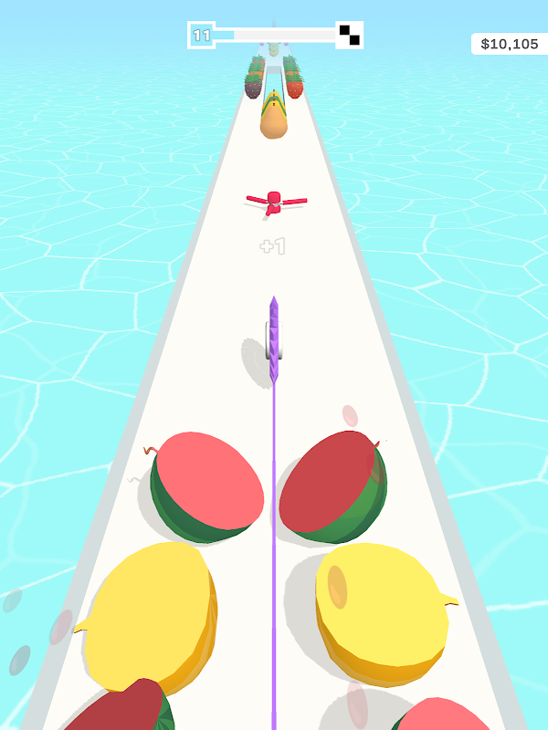 A jogabilidade de deslizar para dividir e fatiar nunca foi vista antes e é única pela forma como seus controles são posicionados e usados no jogo. O fatiador tem a capacidade de se duplicar e duplicar, ganhando o dobro de poder de fatiamento e distância percorrida. O controle é fácil de aprender, divertido e preciso, e utiliza a mecânica de deslizar para a esquerda e para a direita. O efeito dos controles durante o jogo é importante e pode fazer a diferença entre uma corrida vitoriosa com o máximo de pontos e uma corrida que não pôde ser concluída. Participe de corridas ASMR gratificantes com níveis atraentes, variações de fatias incríveis e níveis bônus incríveis!