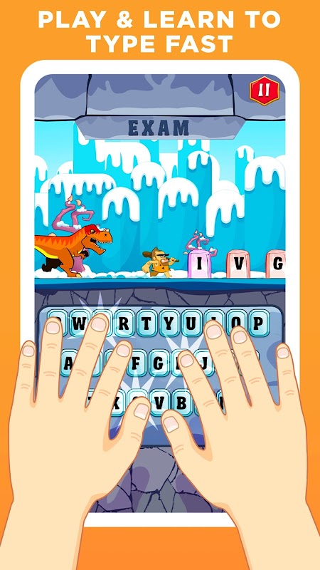 Digite palavras e letras diferentes para se tornar um verdadeiro caveman para aprender a digitar rapido no teclado ingles 🇬🇧 com os dinossauros 🦕. Aprenda a escrever em portugues e ingles para escapar de um dinossauro rex faminto 🤤