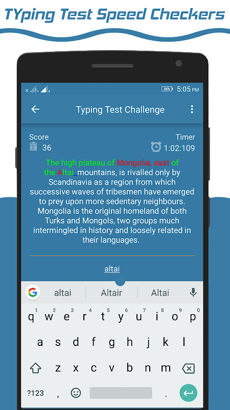 Typing Test App is one of the challenging App to fast typing.Typing Test App is not designed for only fun but it helps you can build your memory power. Your typing speed will increase day to day.