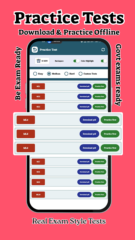 🔹 Manage Custom Tests: Easily save, practice, and delete your custom tests.