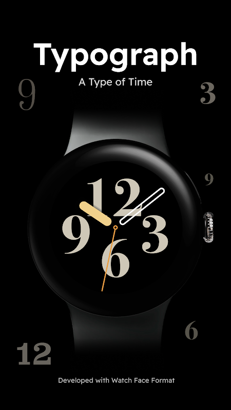 Typograph é um mostrador analógico mínimo para smartwatches Wear OS.