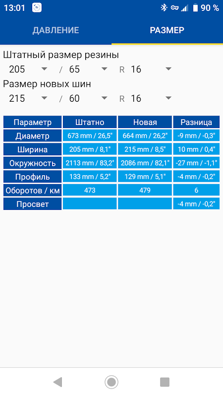 O autor do aplicativo não se responsabiliza por danos resultantes do uso / não uso deste aplicativo. Se você não tiver certeza de suas ações - use a borracha recomendada pelo fabricante do seu carro, bombeada pela pressão recomendada pelo fabricante.