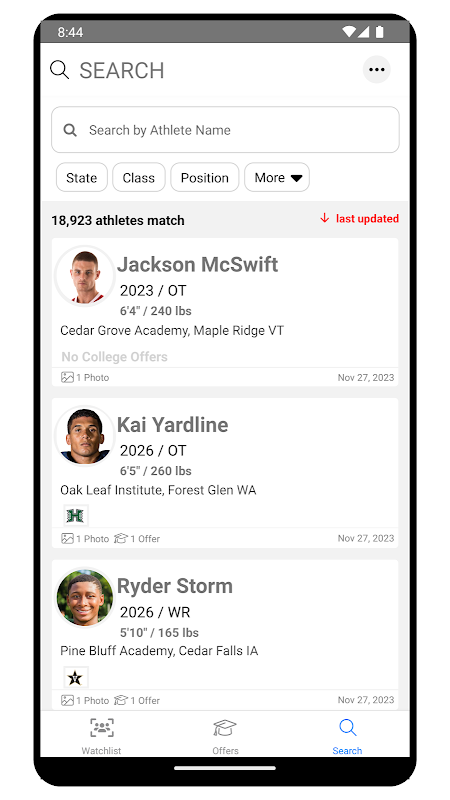 UCWatchlist é o aplicativo móvel complementar do UCReport - The Premier Underclassman Scouting Database.