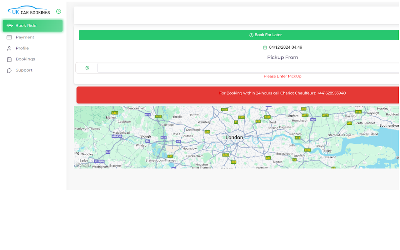 Aplicativo de motorista para UKCB Car Booking Ltd
