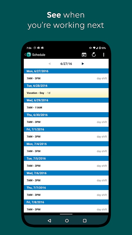 Os funcionários podem entrar / sair do trabalho, verificar seus horários, folgas, benefícios e pagamento. Os gerentes podem cuidar das exceções conforme elas surgem, garantir que a equipe e os cronogramas estejam em dia, tomar medidas quanto aos pedidos de folga e outras e outras necessidades importantes.