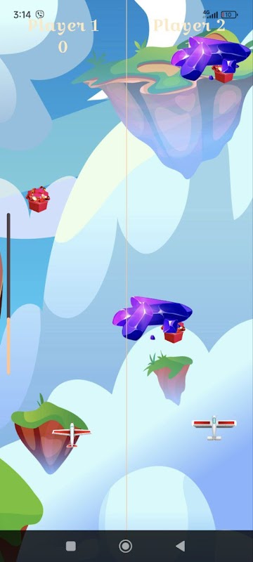 - O **Jogador 1** controla seu avião na metade esquerda da tela.