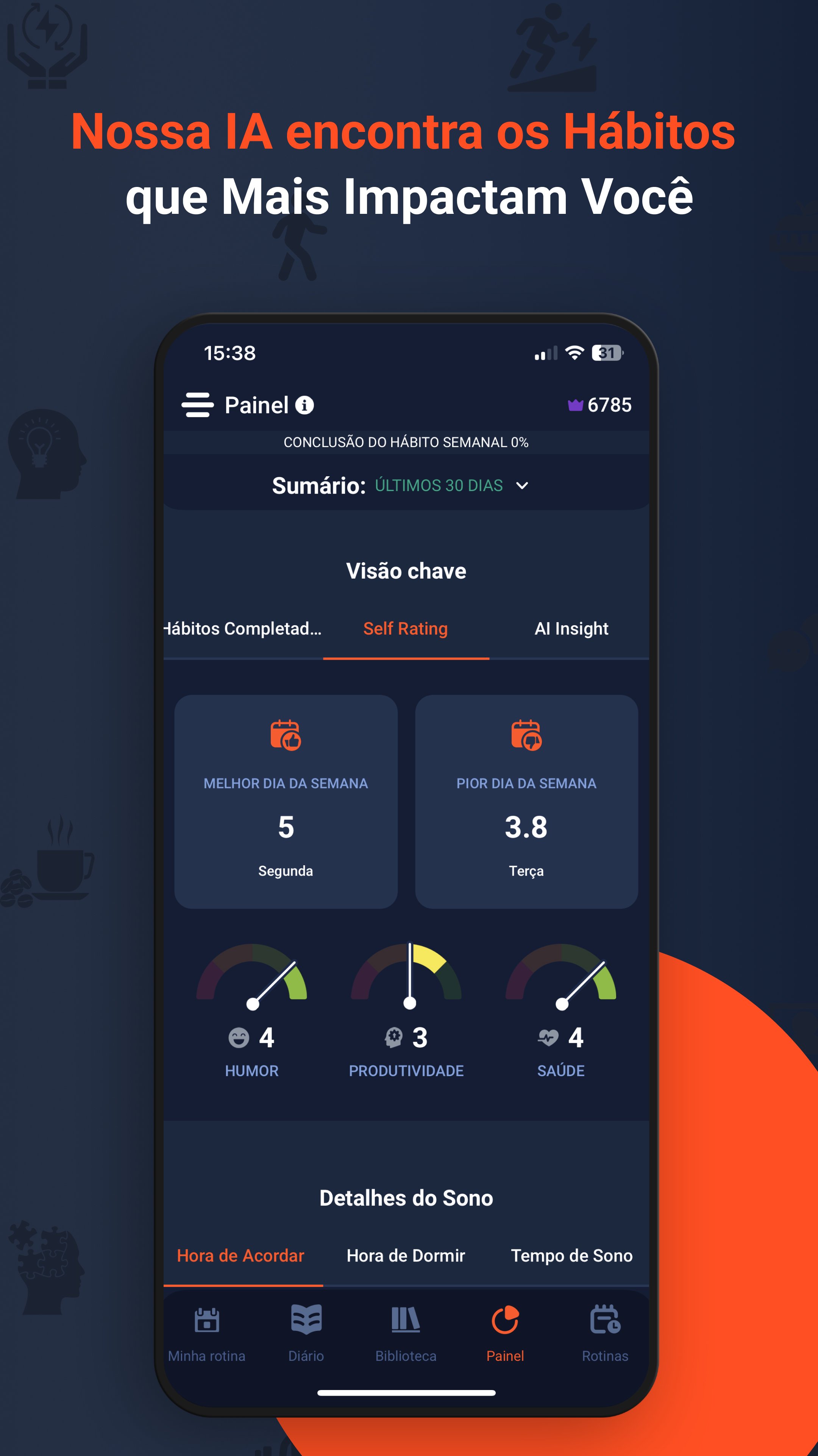 - Análise por IA: Descubra como cada um dos seus hábitos afeta você e se faz parte da sua rotina ideal.