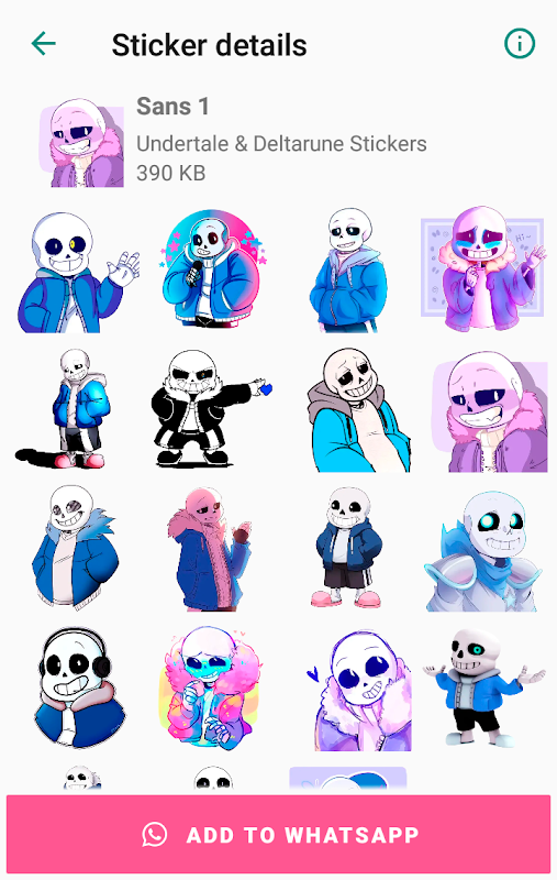 This app contains a large collection of packs of Undertale Stickers for WhatsApp. Undertale and Deltarune for WhatsApp stickers collection, with many different stickers set. Now express yourself using awesome Undertale Stickers with WAStickerApps.