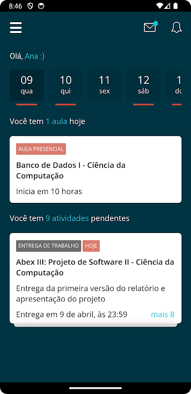 - Informações sobre componentes curriculares, notas, materiais de apoio e trabalhos;