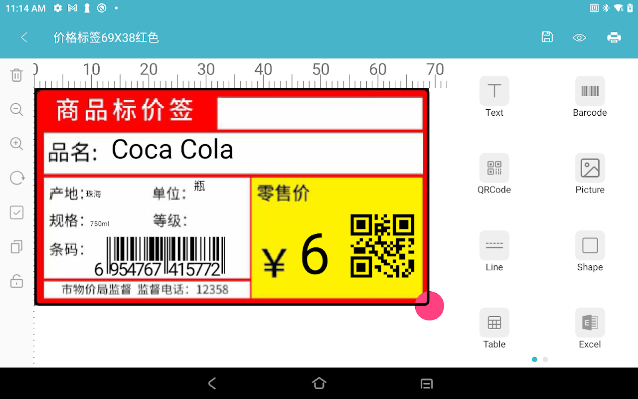 2. **Suporte para impressão de múltiplas etiquetas:** O aplicativo suporta vários tipos de etiquetas, incluindo texto, códigos QR, códigos de barras, imagens, tabelas e datas, atendendo a diferentes requisitos de cenários.
