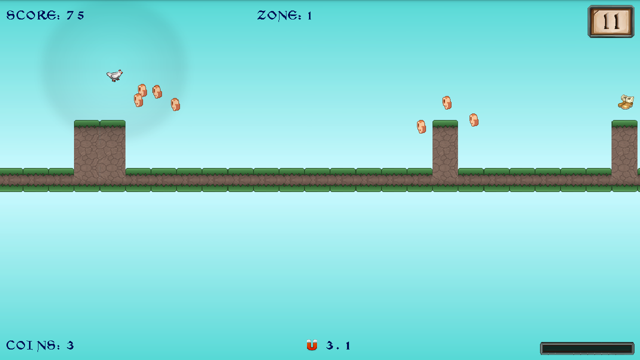 Game contains various characters, from funny Chicken to frightening Cobold, hats for them to wear and skills that will help you to run longer and reach further locations. Most skills can be upgraded, allowing you to touch the sky with Winged Boots or smash through the obstacles using Block Breaker. All the fun is accompanied by vibrant tunes.
