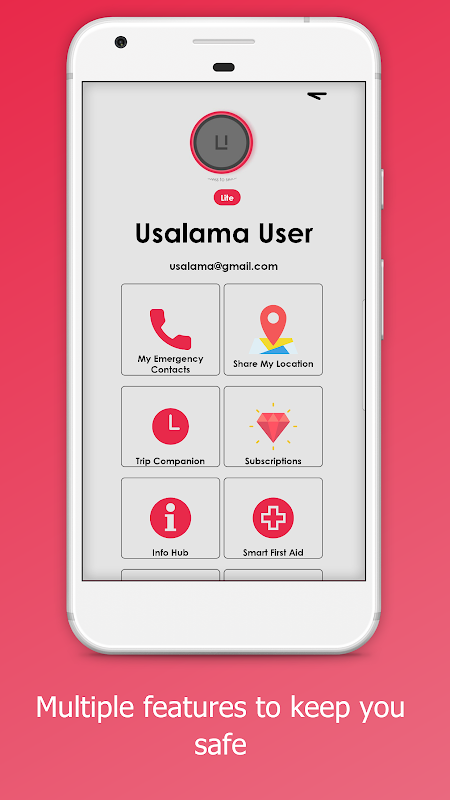 Usalama liga você para ajudar. Ele permite que você envie mensagens de emergência aos prestadores de serviços de emergência e três contatos predefinidos de perto da família e amigos. Este faz uso de GPS para captar a sua localização geográfica exata, que é retransmitida em conjunto com o cenário de crime.