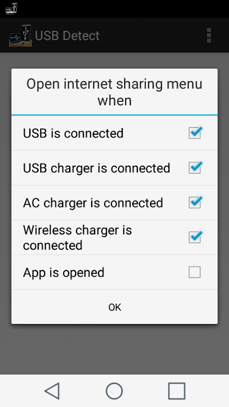 If the internet sharing menu is available on your phone "USB Detect" will open it for you when you connect your phone to a PC *** or a charger depending on "USB Detect" settings.