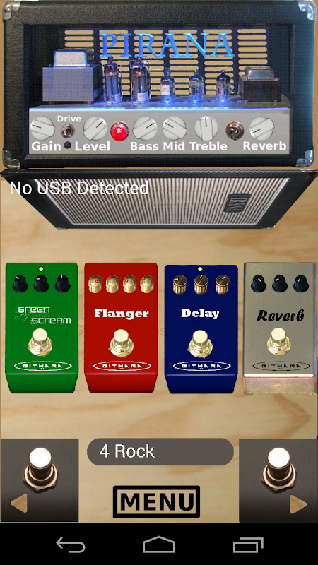 O amp sim em si é muito básico, mas inclui um tom-stack realista para agradável tom de guitarra. Este aplicativo também tem um número de pedais de efeitos de guitarra virtuais, incluindo: