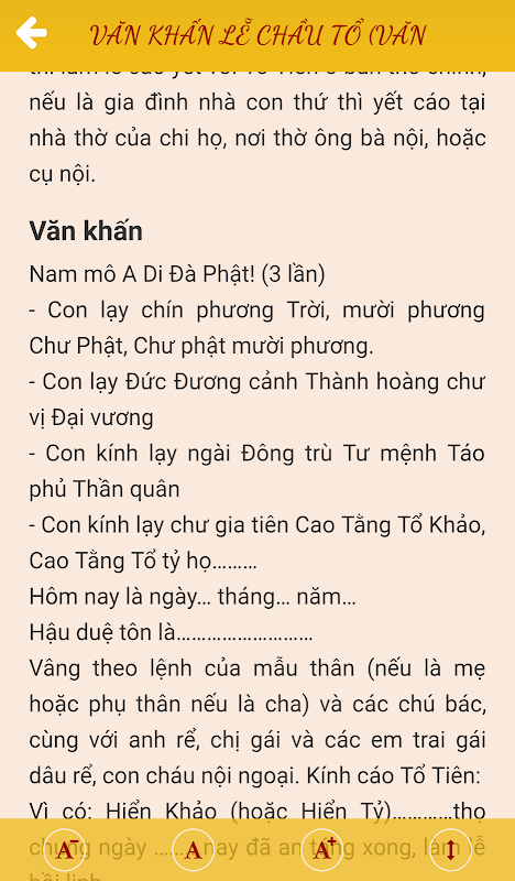 Trong mỗi bài văn khấn, chúng tôi có thêm chức năng hỗ trợ người dùng khấn trực tiếp. Bạn có thể sử dụng ứng dụng này trong lúc thực hiện việc khấn. Bạn có thể điều chỉnh tốc độ kéo trang sao cho phù hợp với việc khấn của bạn.