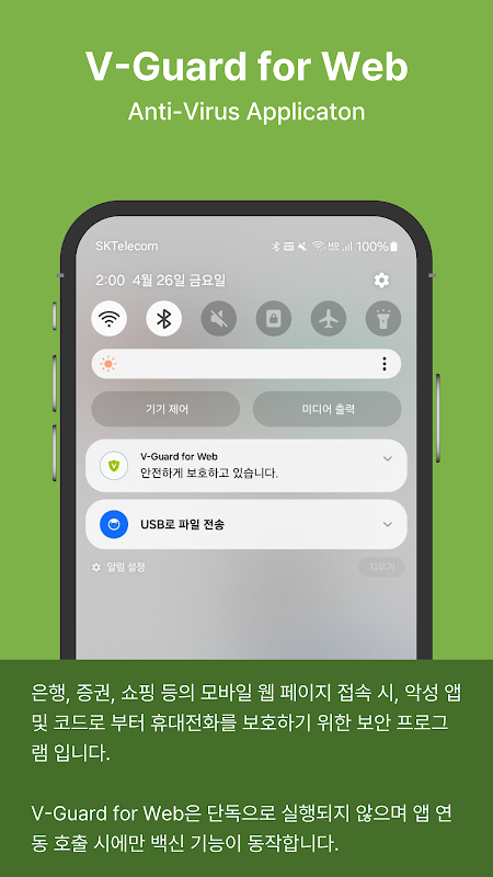 V-Guard for Web é um aplicativo antivírus vinculado e executado quando acessado a partir de páginas da web móveis, como bancos, títulos e compras.