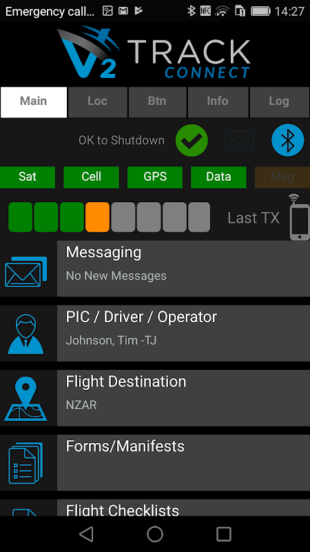 Além de mensagens O aplicativo também oferece a capacidade de definir o motorista / piloto em comando, digite um destino do vôo, calcular o peso e equilíbrio / manifesta e listas de verificação de vôo completo. Todos estes detalhes são transmitidas automaticamente para o site de rastreamento em tempo real em alta informações detalhadas de rastreamento.