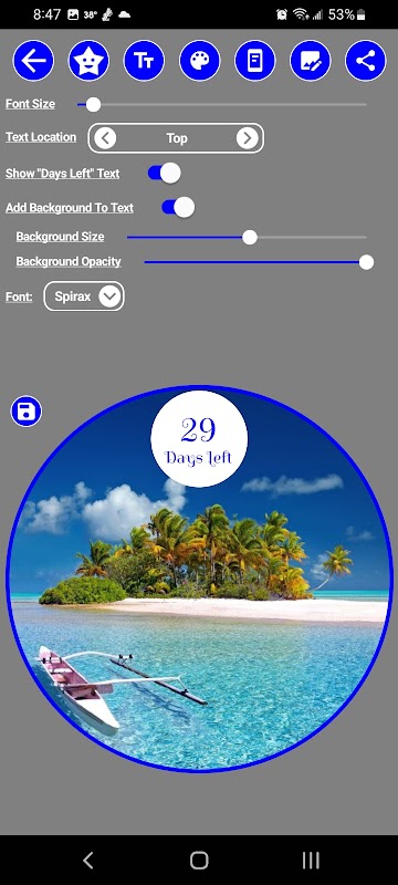 Os mini widgets permitem que você compartilhe com seus amigos e familiares sua empolgação com a contagem regressiva. À medida que os dias se aproximam, você pode compartilhar quanto tempo resta até sua viagem.