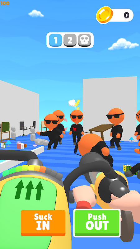 In this game you can control your character with a vacuum gun by moving your finger across the screen.