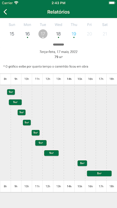- Relatório de Atendimento ( Tempo em obra e volume de cada uma das entregas )