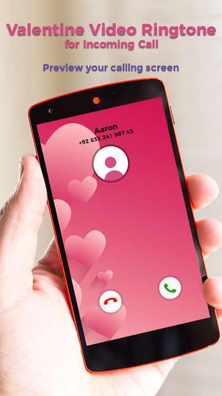 Valentine Video Ringtone for Incoming Call with Get vidoes incoming calls alert notification and you have also choice to set amazing app given caller attractive theme with simple click.application which helps you create and make your phone screen more stylish when you have incoming calls. This app provides a range of beautiful, interesting and unique videos to set incoming themes.