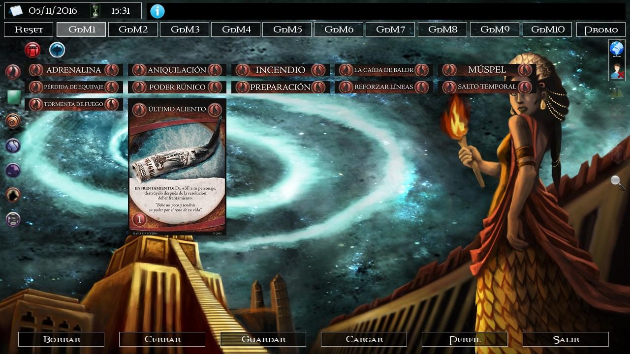 Valhalla GdM es una aplicación que permite visualizar todas las cartas oficiales del juego Guerra de Mitos, y (en un futuro cercano) crear mazos personalizados y jugar partidas de este juego en modo online contra otra jugador.