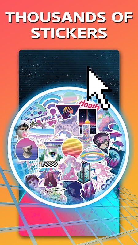 - Vaporwave stickers, with more than 10 vaporwave stickers categories, you can choose whatever you want, and edit your photo like a pro, invaporwave photo editor app comes with thousands of stickers from different categories such as vaporwave, retrowave, anime, girly, cute, and kawaii, old computer, text and many more stickers.