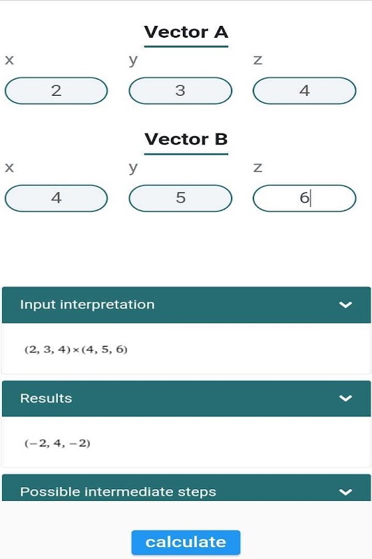 We are sure this calculator of vector math will be your next favorite vector problem solver. Because it is easy to use and compute graph vector and any equation of vectors with this calculus calculator. Just insert the right values in the correct boxes of x, y and z to have excellent experience of vector calculator math solver.