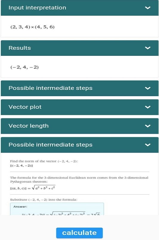 Vector math solution app is very light weight, which works well as a cross product calculator on low ram devices too without any trouble to analytic geometry problems. It is hard to manually do vector analysis questions without a good vector solving app, especially when you have a lack of time to solve equations of cross product vector. But this geometry solver will surprise you by solving problems of any vector in no time with vectors calculator. You can say this math solver is a gift to get detailed answers about vector graphs and solutions for everyone.