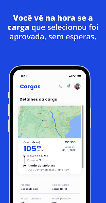 Tudo isso na tela do seu celular, com ordem de carga e documentos de viagem para você baixar, sem precisar de papel.