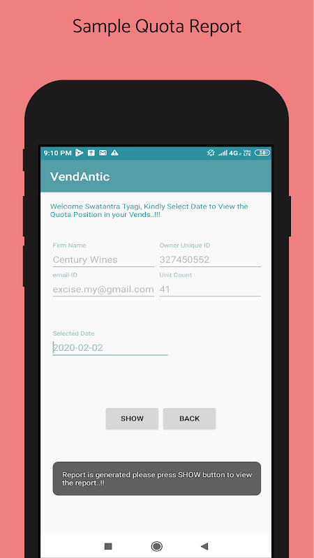 ★ O responsável pela unidade adicionará os detalhes de cada loja de bebidas (Vend) sob seu controle e o respectivo Vendedor responsável será informado por SMS com credenciais de login no aplicativo.